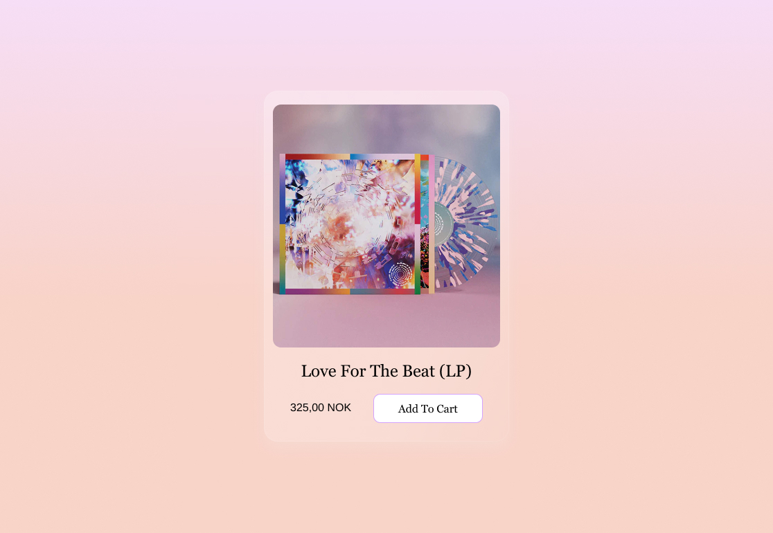 Fargene valgte jeg fordi de harmoniserte godt sammen, og brukte de på bakgrunner og hover-effekter. Jeg har også brukt glassmorphism inspirert av albumet, for å skape dybde, noe jeg savnet på den originale siden. Samtidig ville jeg ikke lage forstyrrende elementer, og jeg synes at glasseffektene var en enkel og fin detalj.