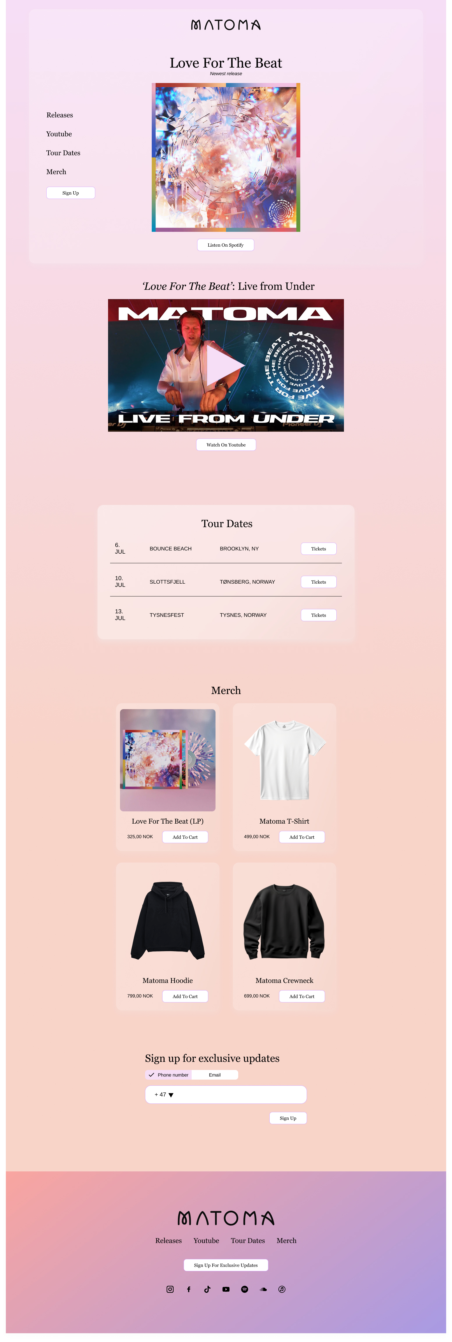 Redesign av Matoma's nettside
